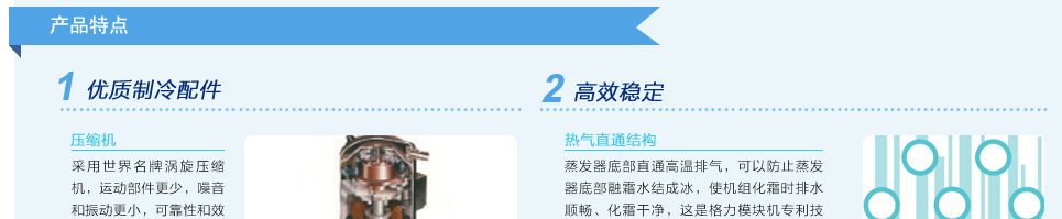 簡介:格力模塊式風(fēng)冷冷(熱)水機組選用世界著名品牌的制冷部件同時結(jié)合格力先進的研發(fā)手段和制造工藝,具有高效節(jié)能、運行穩(wěn)定、靈活多樣的優(yōu)良特點,率先成為首批獲得中國冷水機組節(jié)能認證的產(chǎn)品。憑借獨特的技術(shù)優(yōu)勢、過硬的產(chǎn)品質(zhì)量以及完善的售后服務(wù),格力中央空調(diào)樹立了民族品牌的精品形象。