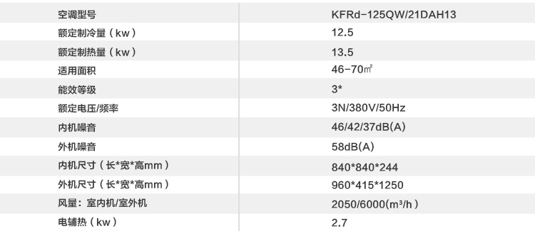 | 外機尺寸(寬x高x深)mm | 960×415×1250 |